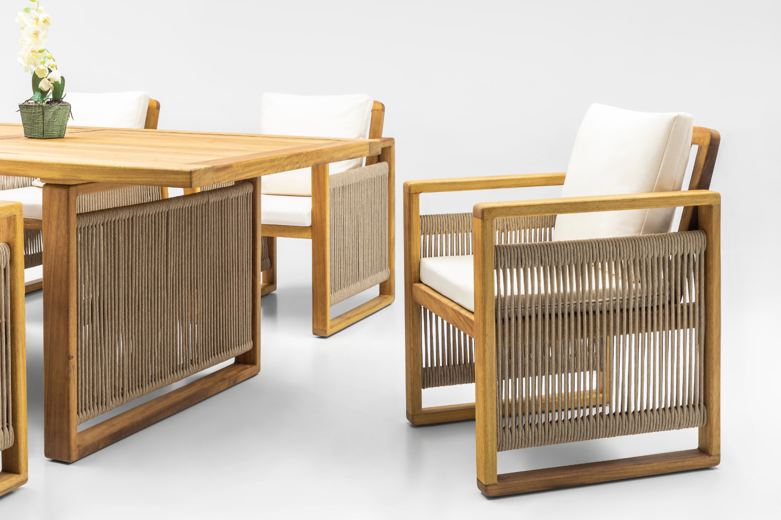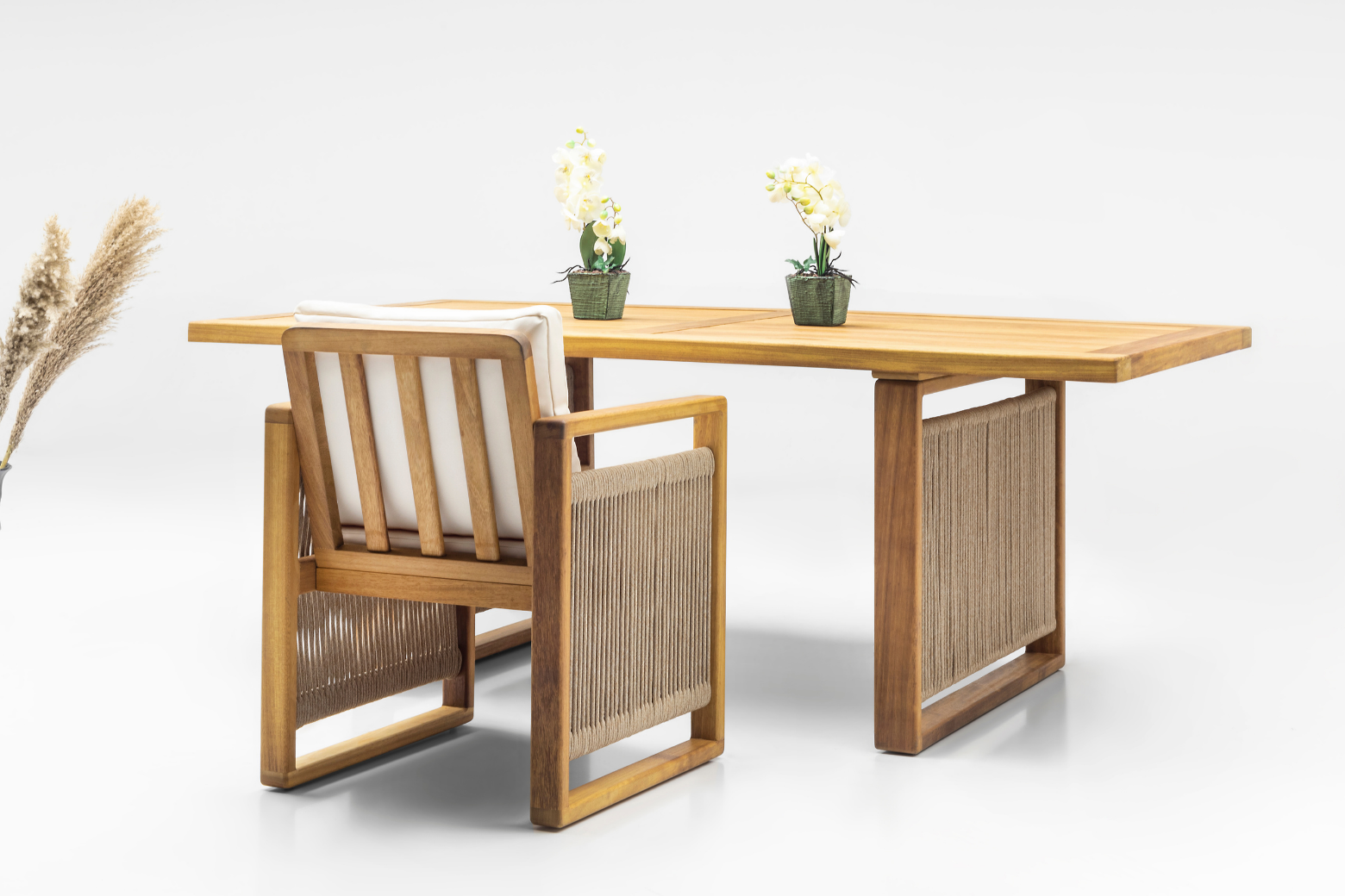 İroko ahşabın sağlamlığı ve uzun ömrüyle Argos takımın tasarımını biz çok sevdik. Yanlardan Luxio Cord Outdoor ipinin eşsiz örgü güzelliği irokonon birleşimiyle uzun süreli kullanıma sahiptir.