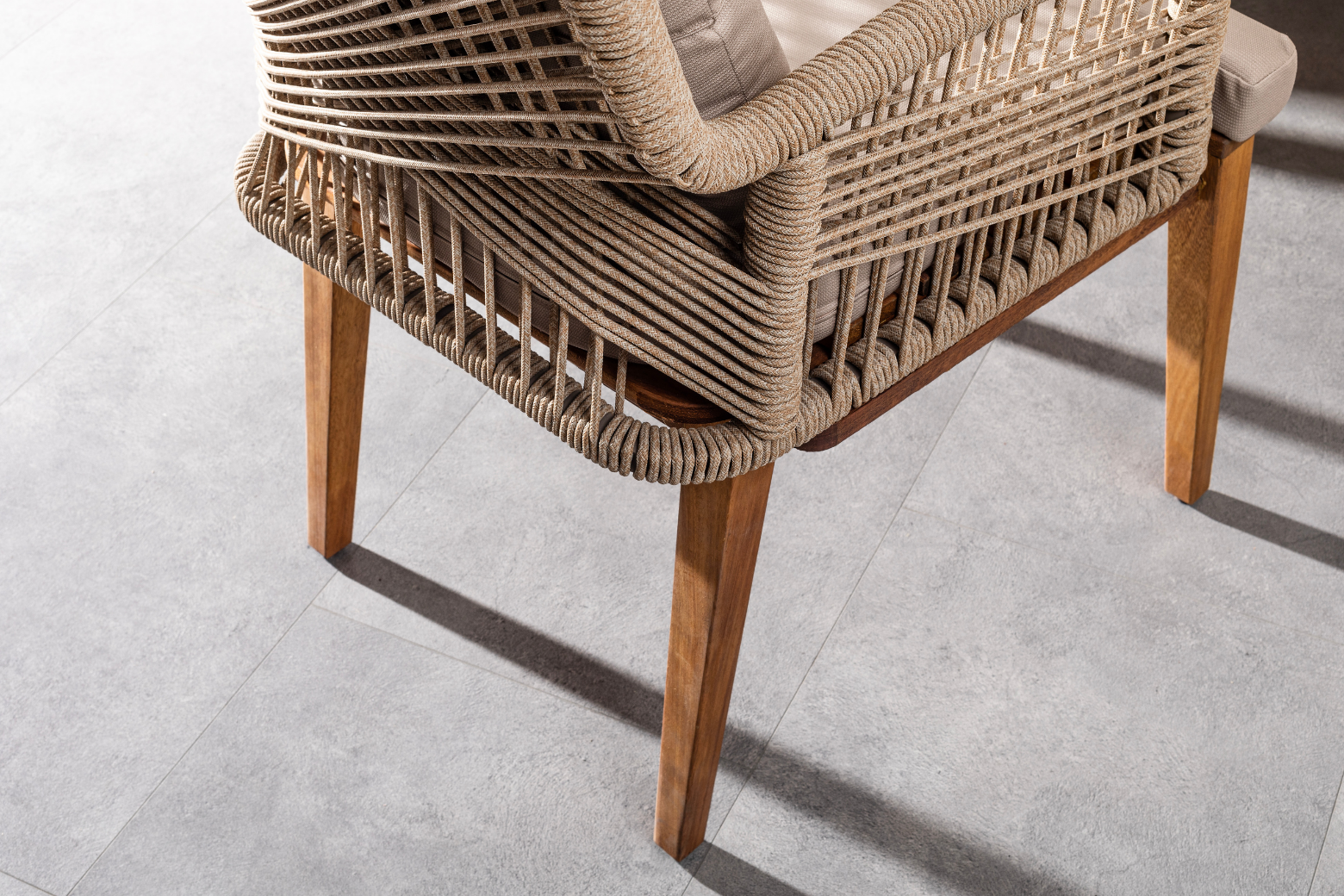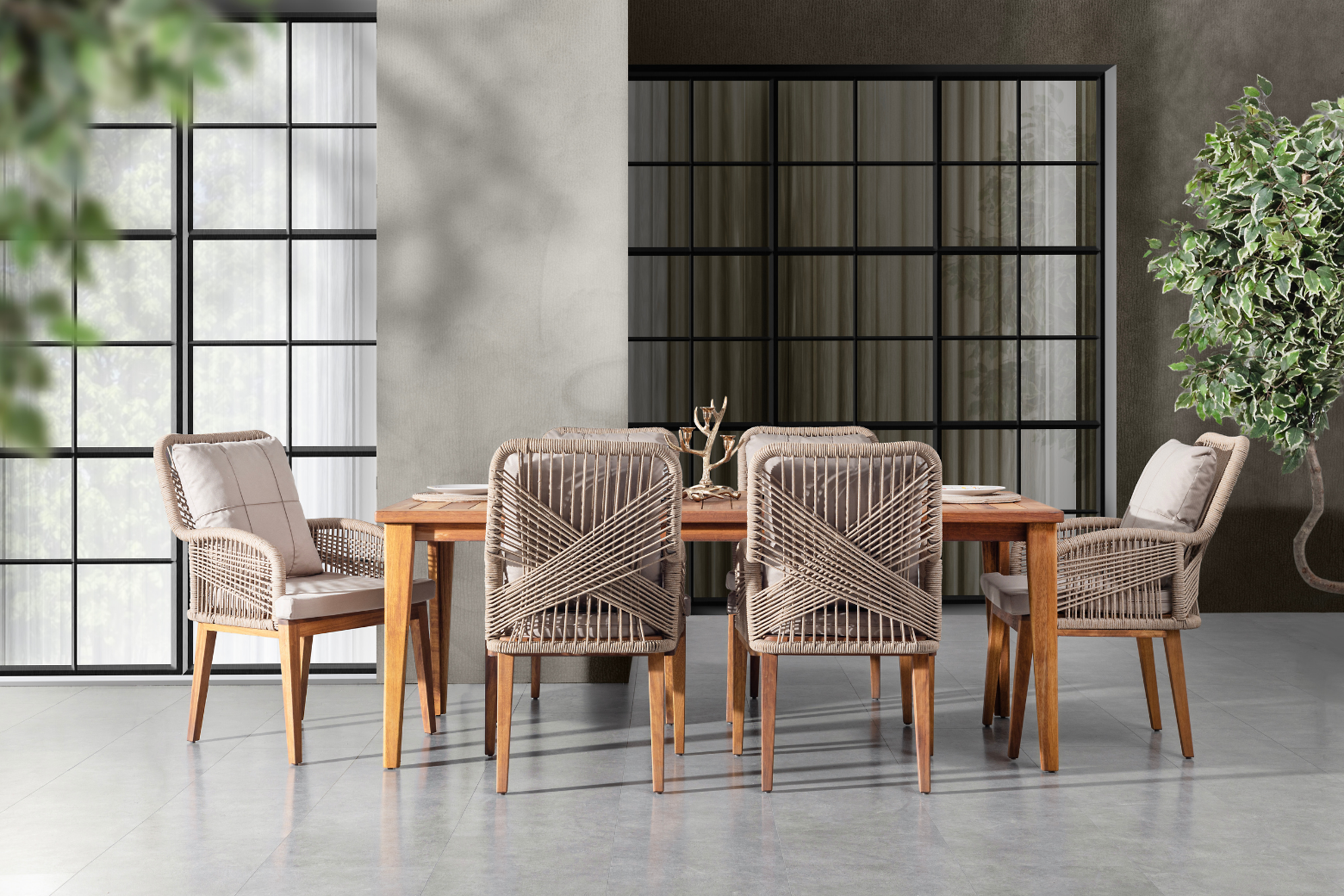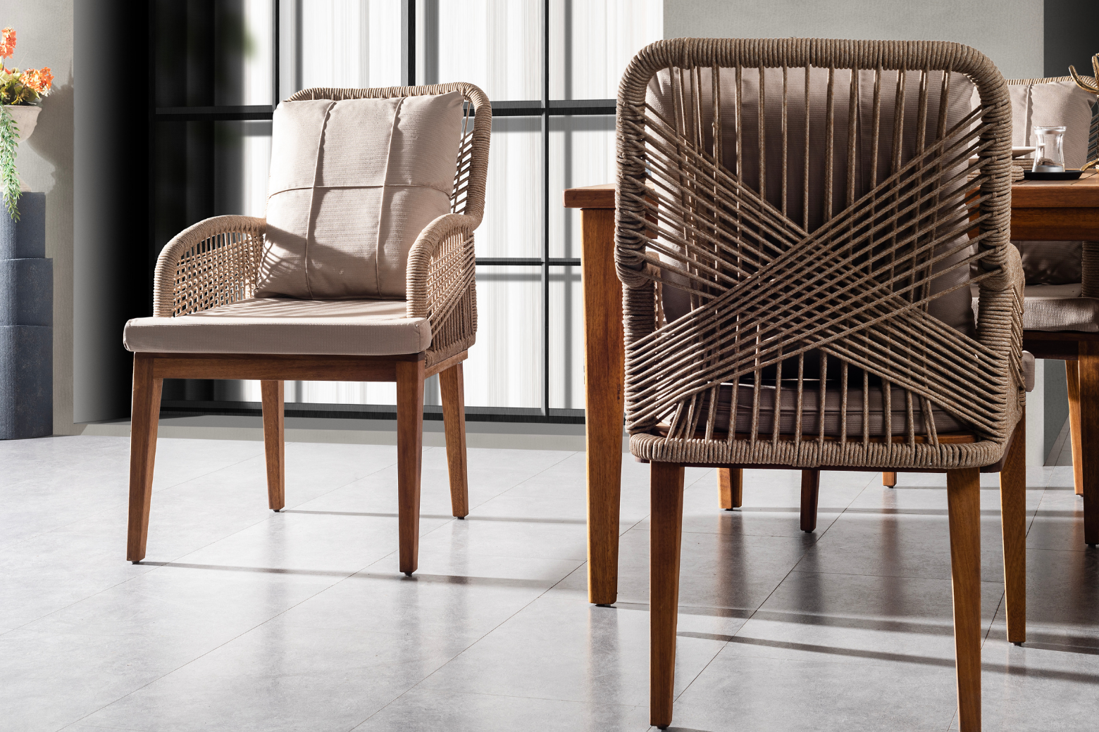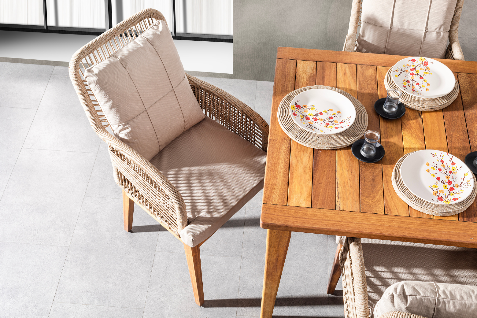 Terazzi Garden'da sizler için özel olarak tasarlanan Arizona masa takımı ile bahçenizi şık ve konforlu bir şekilde dekore edebilirsiniz. Birinci kalite ireko ağacından ve ithal Luxio-Cord iplerden üretilen bu ürün, kullanım kolaylığı ve uzun ömürlülüğü ile sizleri memnun edecek.