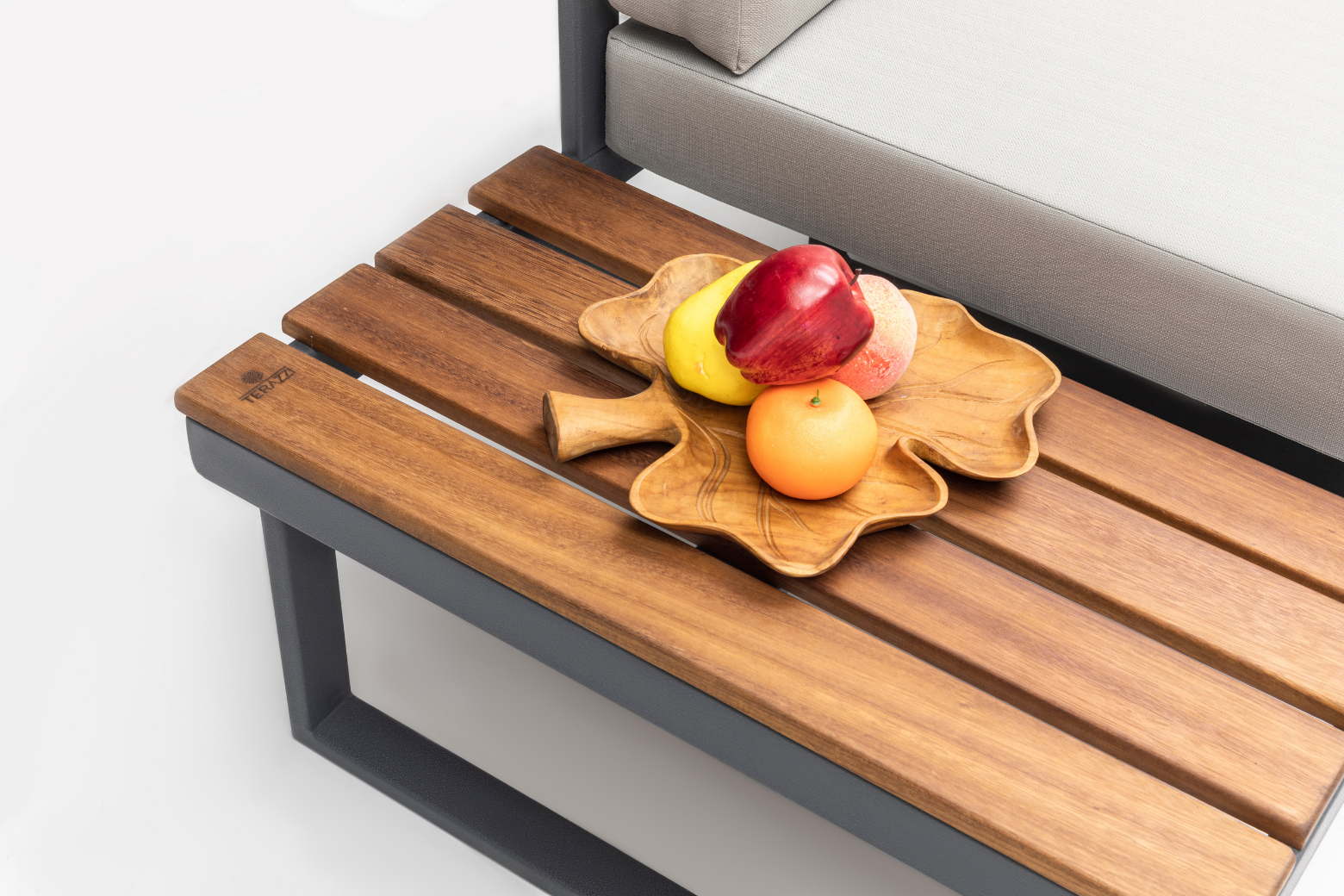 Ürün alüminyumdan üretilmekte olup elektrostatik toz boya ile boyanmaktadır. Ahşap kısımlarında iroko ağacı kullanılmaktadır. Üründe kullanılan minderler 32 DNS yoğunluğa sahiptir, minder kumaşları su itici ve leke tutmaz özelliktedir.