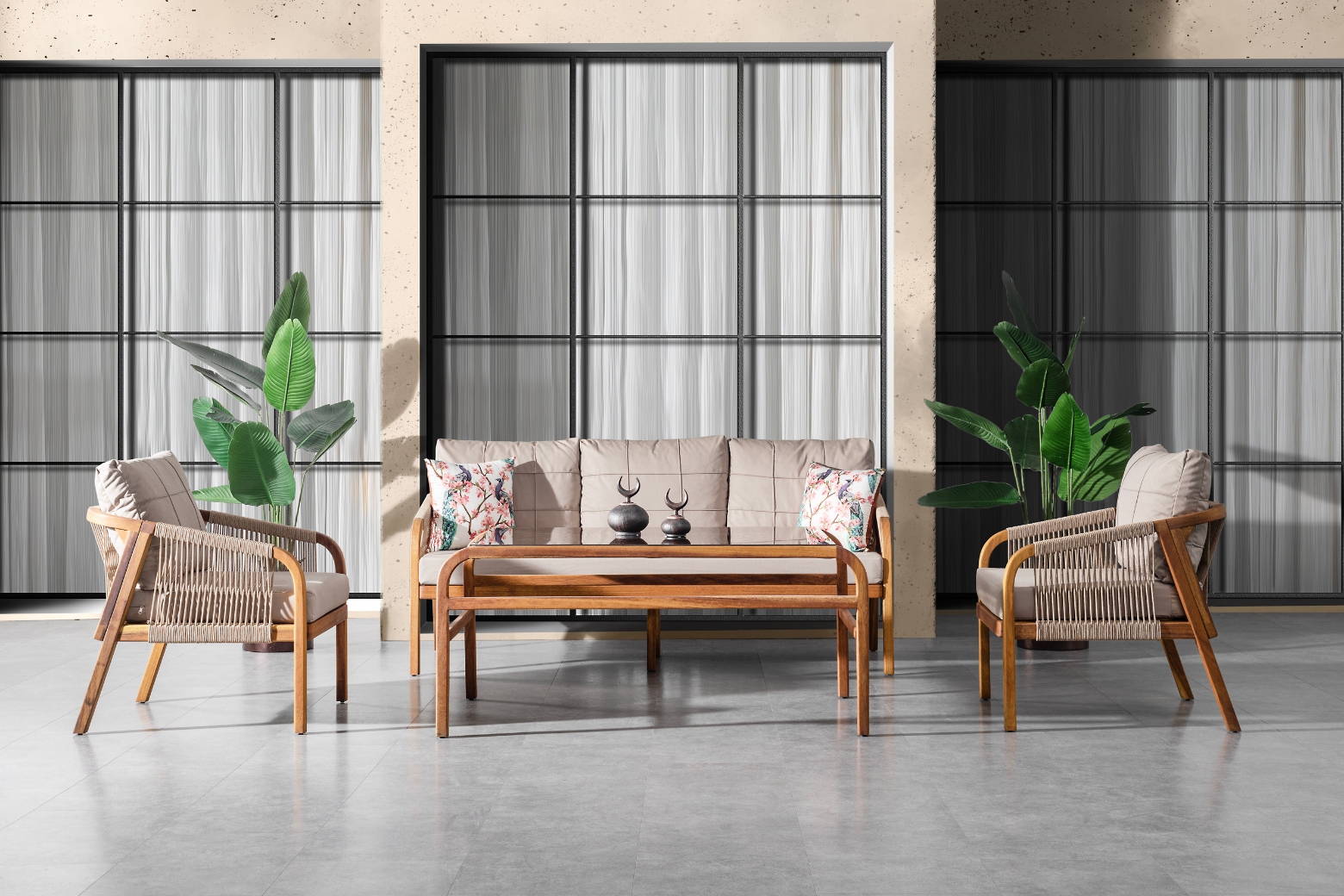 Ahşabın göze hitabıyla Luxio Cord iplerinin sağlamlığını Evora Wood Oturma Grubu ile sizlere sunuyoruz. İroko ağacının güneş ışınlarına ve yağmura dayanıklılığı, kumaşların su itici özelliği taşıması ve tasarımdaki estetik görümüyle Evora Wood Oturma Grubunu sizler için tasarladık.