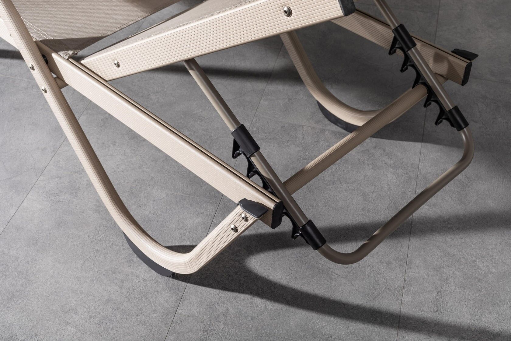 Ürün iskeleti elektrostatik toz boyalı alüminyumdur. Mindersiz kullanım imkanı veren Serge Ferrari file kumaştan üretilmiştir. Bağlantı ekipmanı olarak krom kaplamalı vida kullanılmaktadır.