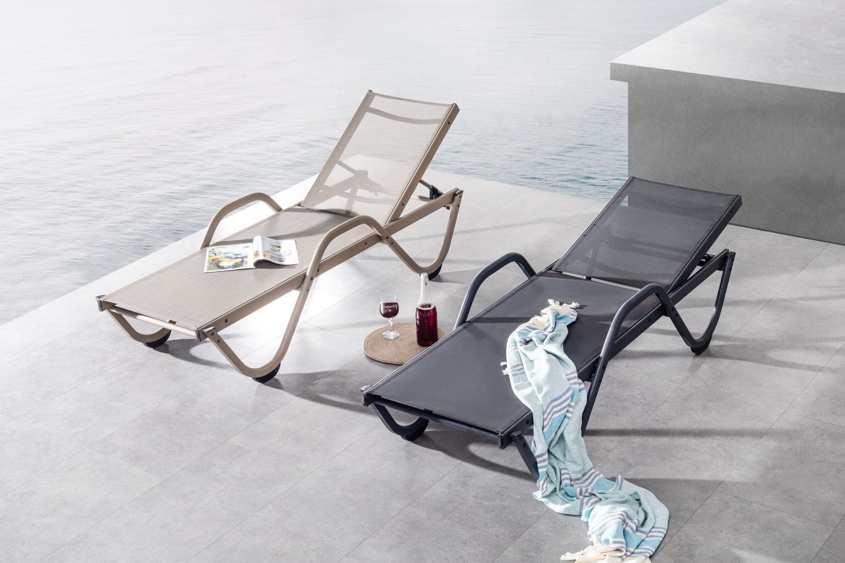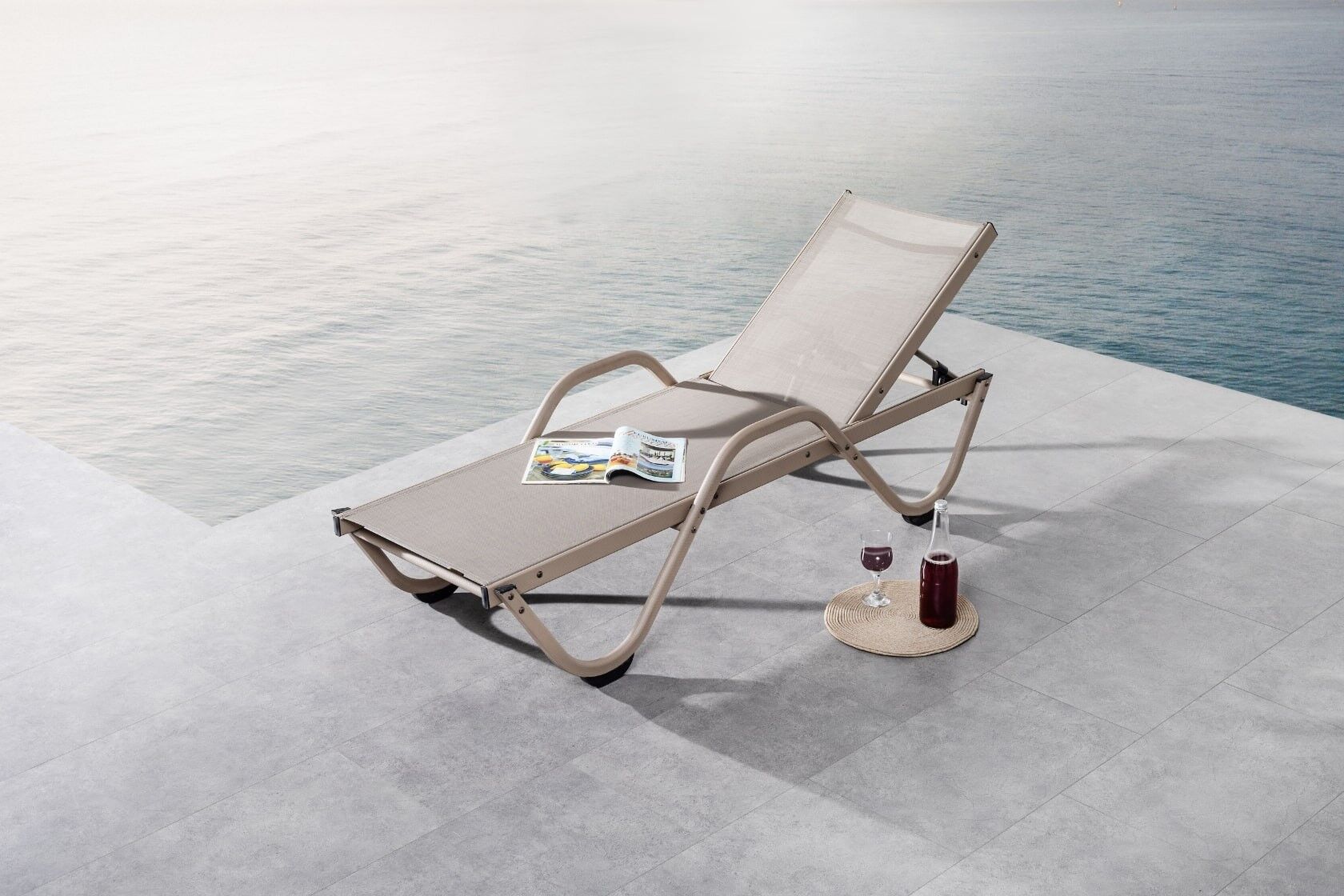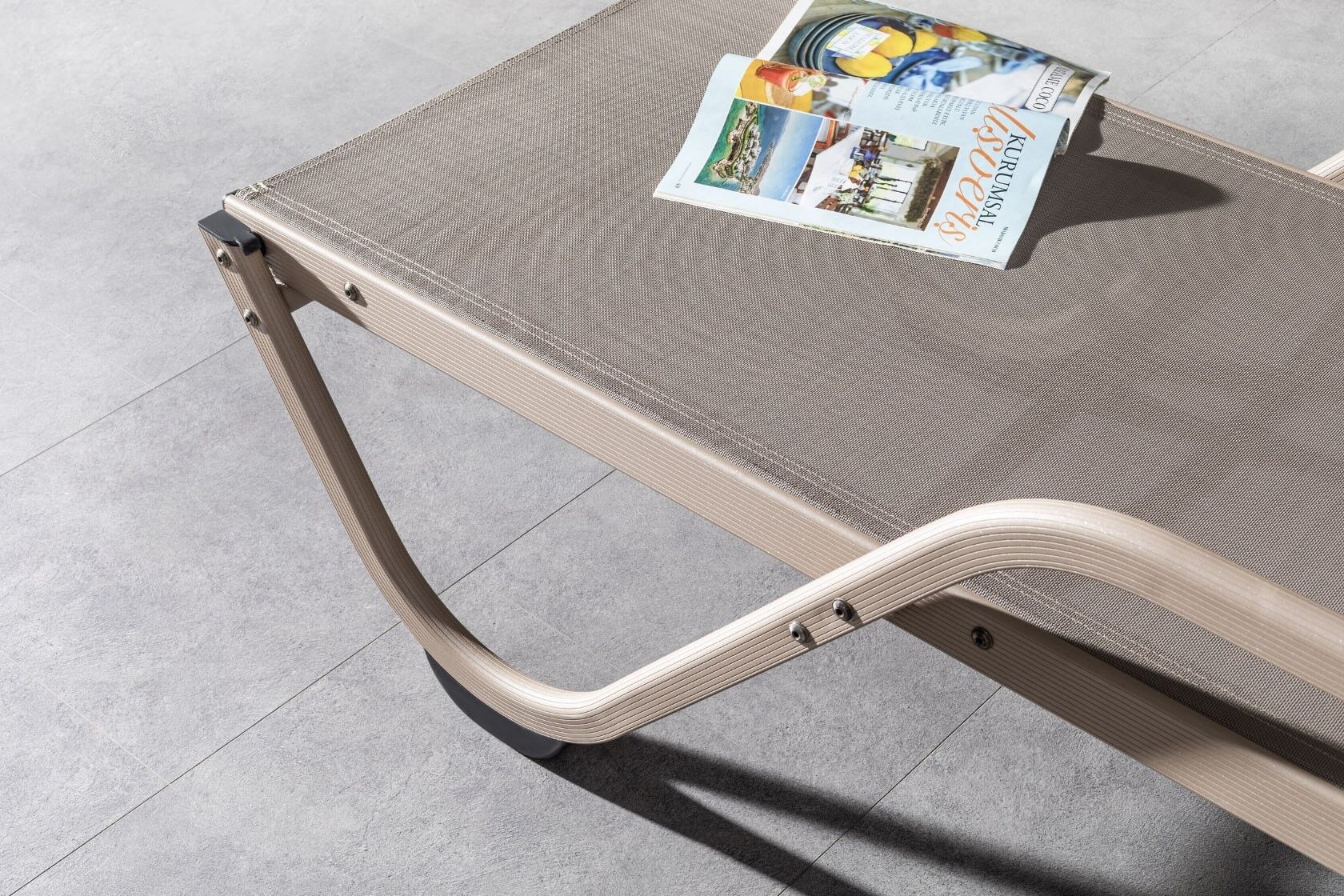 Alüminyum iskeleti ve konforlu esnek yapısıyla hem rahat hem de uzun ömürlü Gala şezlongu sizin için tasarladık. Özel Serge Ferrari file kumaş kullanılarak üretilen Gala şezlong mindersiz kullanım, gizli tekerlek ve istiflenebilir yapısıyla sizlere konforlu bir deneyim yaşatacak.