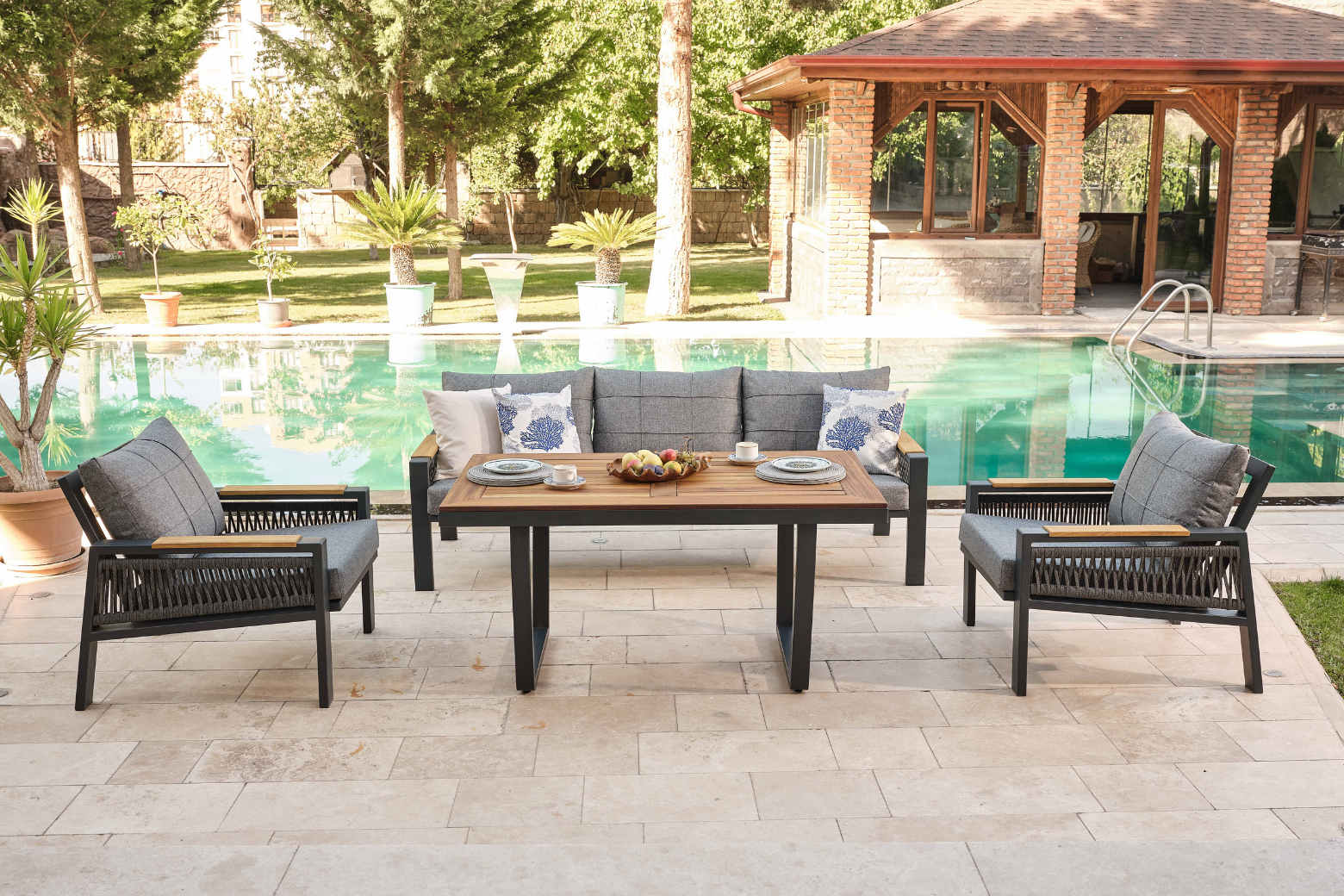 Alüminyumun, paslanmaz özelliği, ahşabın göz alıcı güzelliği ve ireko ağacının sıcaklığının birleşiminden ortaya çıkan Harmony Plus oturma grubu evinize farklı bir hava sunacak. Zamana meydan okuyan ömrüyle Harmony Plus oturma grubu sizlerle.