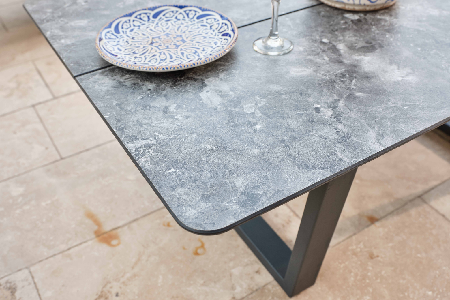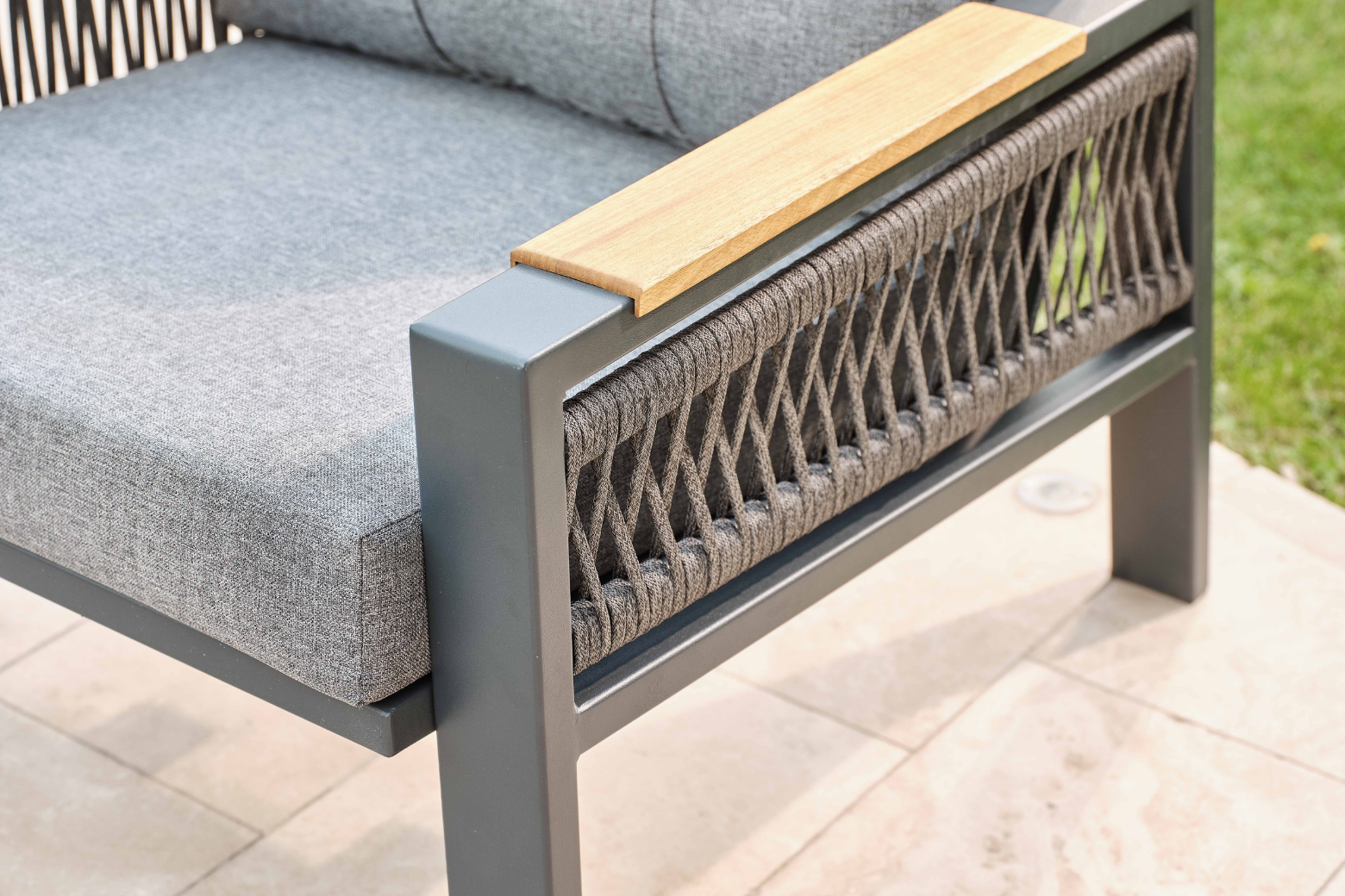 Ürün alüminyumdan üretilmekte olup elektrostatik toz boya ile boyanmaktadır. Ahşap kısımlarında iroko ağacı kullanılmaktadır. Üründe kullanılan minderler 32 DNS yoğunluğa sahiptir, minder kumaşları su itici ve leke tutmaz özelliktedir. Üründeki ipler yurtdışından ithal edilen ve Terazzi için özel olarak üretilen Luxio-Cord iplerdendir. Suya ve UV ışınlarına karşı dayanıklı olan ipler yıkanabilir özelliktedir.