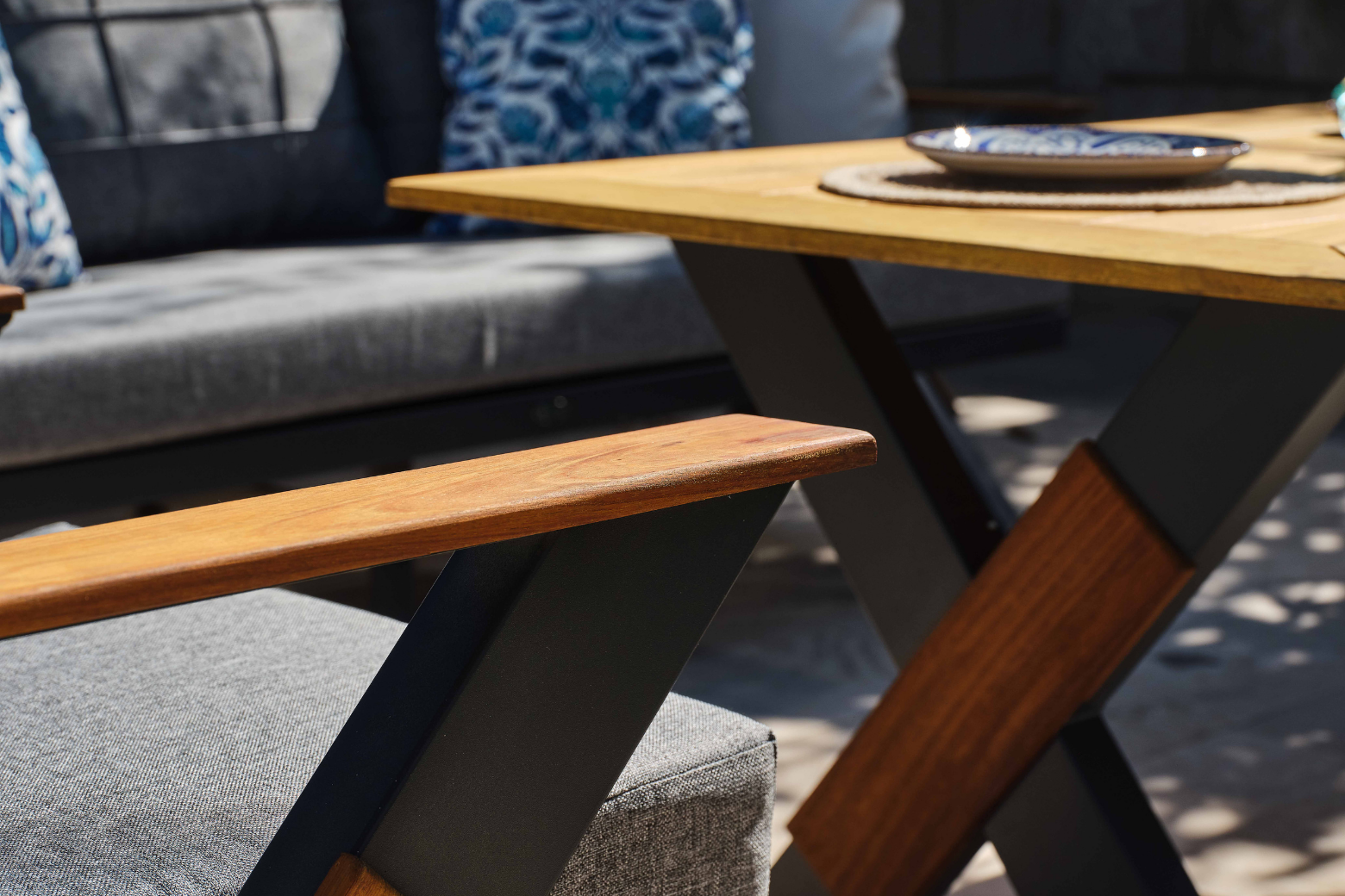 Farklı bir tasarıma sahip Lotus oturma grubu alüminyumun ve ahşabın birleşimiyle göze hitabetini sürdürüyor. Rahat oturumuyla, paslanmaz yapısıyla, minder kumaşlarının su itici özelliğiyle rahatlığınıza rahatlık katacak Lotus oturma grubu sizlerin beğenisine sunuluyor.