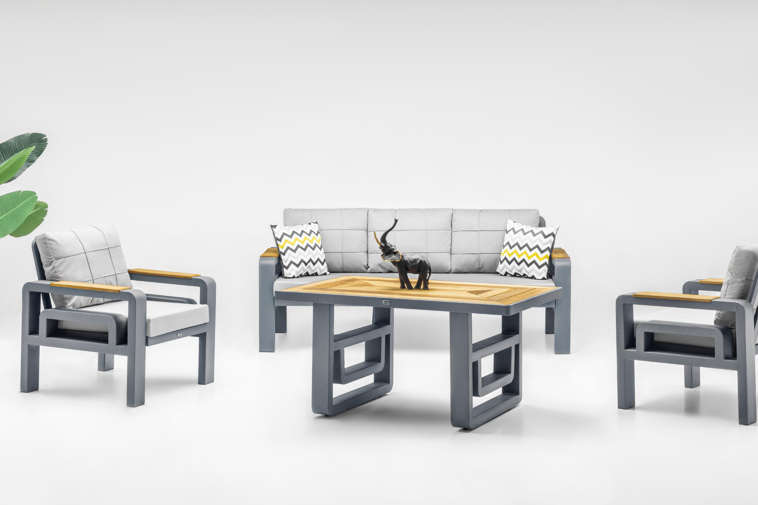Farklı bir tasarıma sahip Napoli oturma grubu alüminyumun ve ahşabın birleşimiyle göze hitabetini sürdürüyor. Rahat oturumuyla, paslanmaz yapısıyla, minder kumaşlarının su itici özelliğiyle rahatlığınıza rahatlık katacak Napoli takım sizlerin beğenisine sunuluyor.