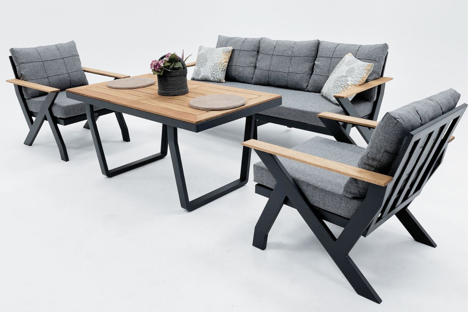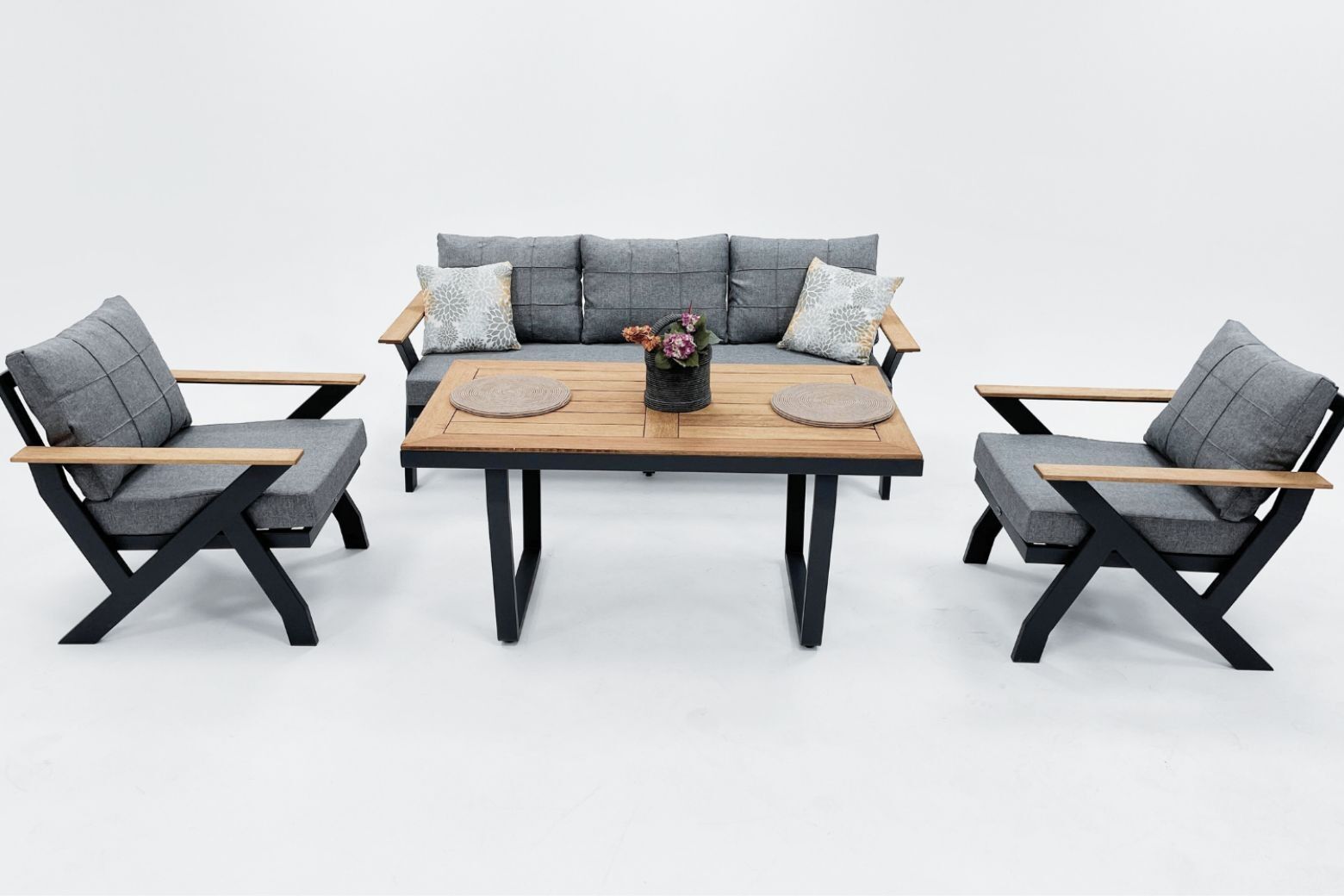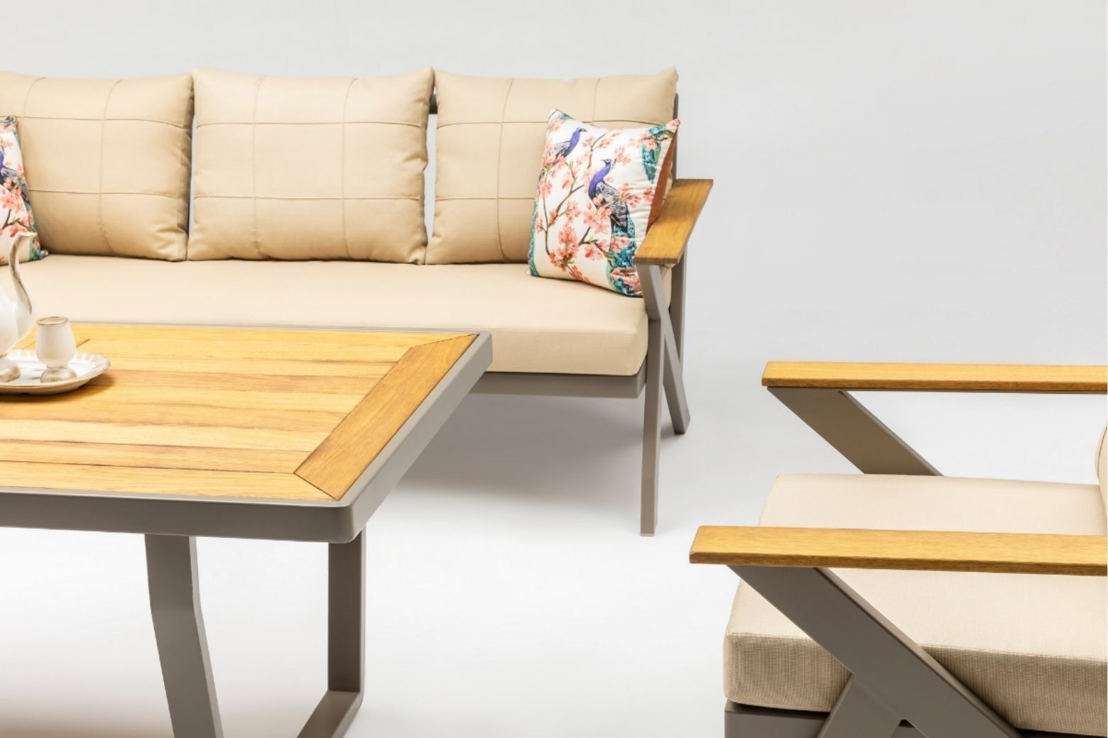 Farklı bir tasarıma sahip Norma Oturma Grubu alüminyumun ve ahşabın birleşimiyle göze hitabetini sürdürüyor. Rahat oturumuyla, paslanmaz yapısıyla, minder kumaşlarının su itici özelliğiyle rahatlığınıza rahatlık katacak Norma Oturma Grubu sizlerin beğenisine sunuluyor.