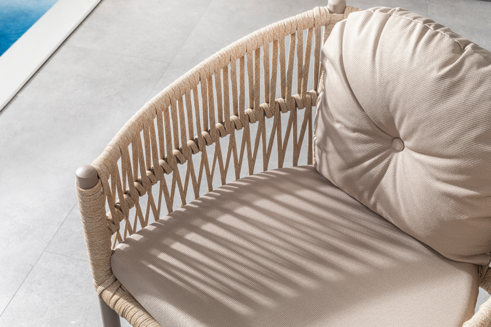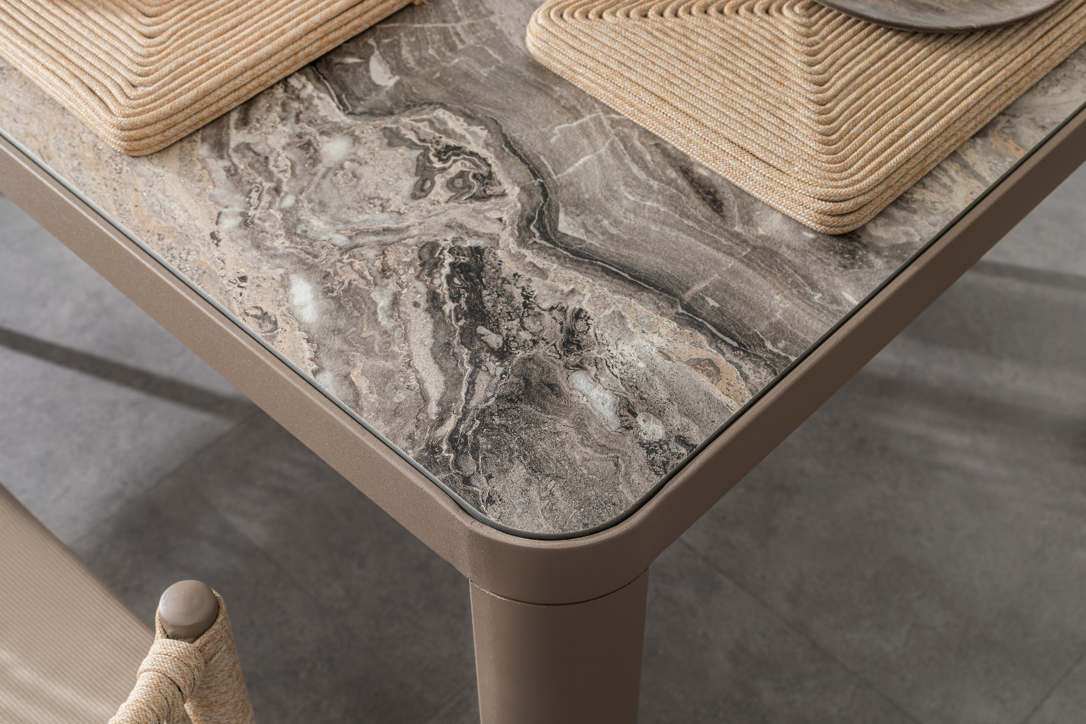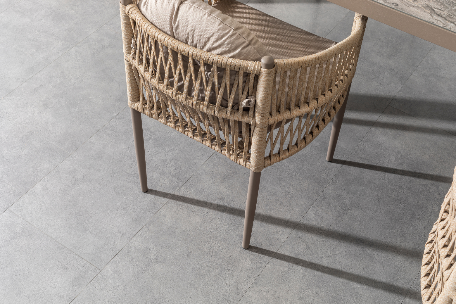 Ürün alüminyumdan üretilmekte olup elektrostatik toz boya ile boyanmaktadır. Ahşap kısımlarında iroko ağacı kullanılmaktadır. Üründe kullanılan minderler 32 DNS yoğunluğa sahiptir, minder kumaşları su itici ve leke tutmaz özelliktedir. Üründeki ipler yurtdışından ithal edilen ve Terazzi için özel olarak üretilen Luxio-Cord iplerdendir. Suya ve UV ışınlarına karşı dayanıklı olan ipler yıkanabilir özelliktedir.