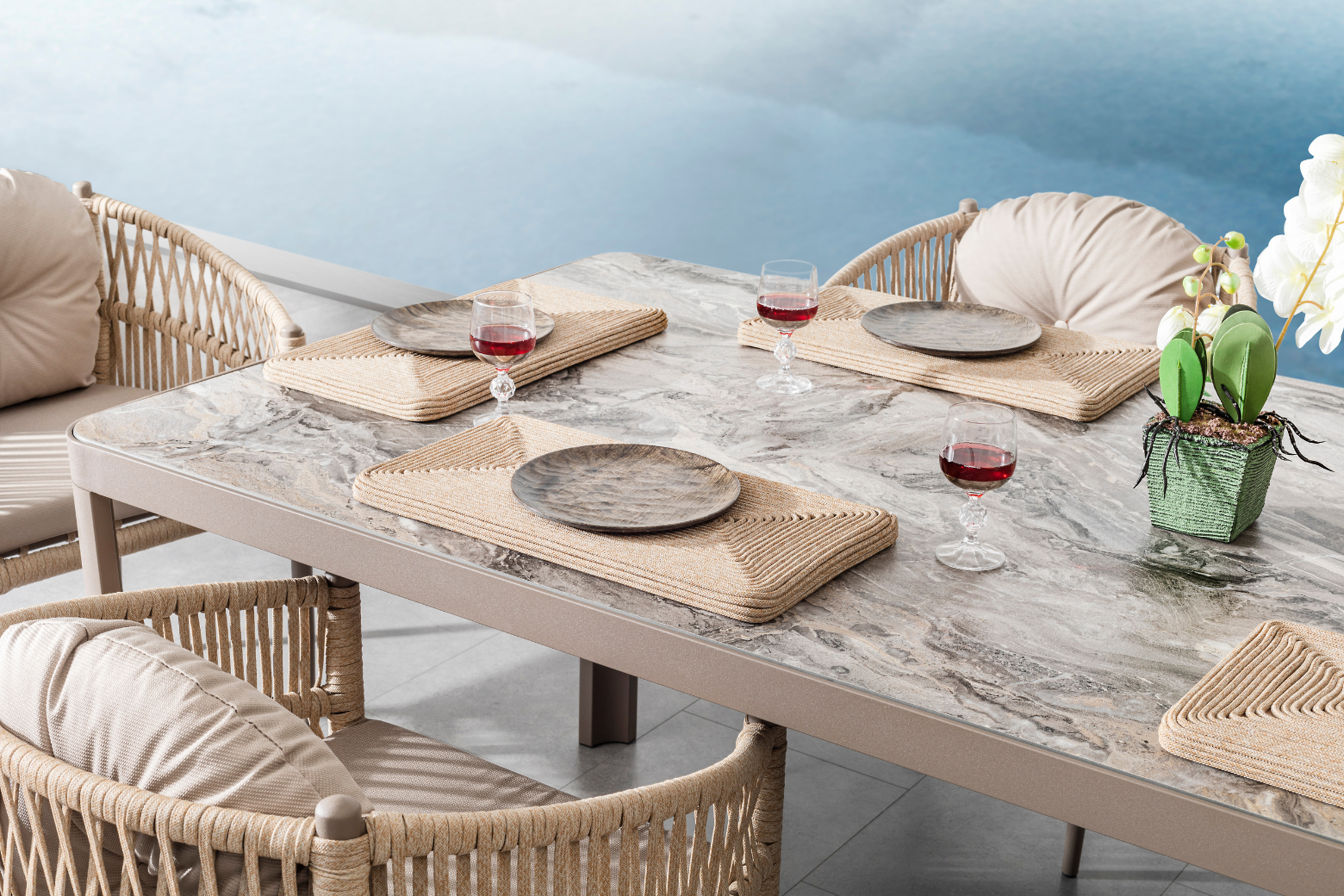 Sandalyelerinin rahatlığı, masa tablasının HPL kompaktın zevkinize hitap eden tasarımı ve sağlamlığıyla Panama masa takımı 100x200 masa ve 6 sandalyeden oluşmaktadır. Luxio Cord Outdoor ipin yanmaz, su geçirmez özelliğiyle uzun ömürlü kullanım sunar.